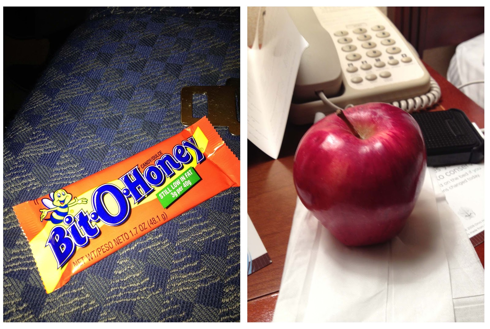| My fave travel snack and Susan's lunch. Not much time for eating... |